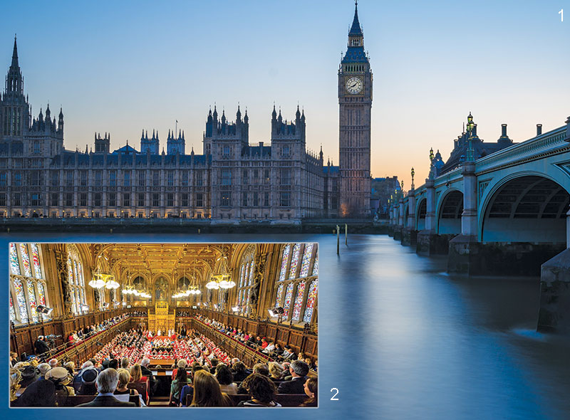 1. İngiltere Parlamento binası ve Westminster Köprüsü | 2. İngiltere Parlamentosu'nda Lordlar Kamarası. |