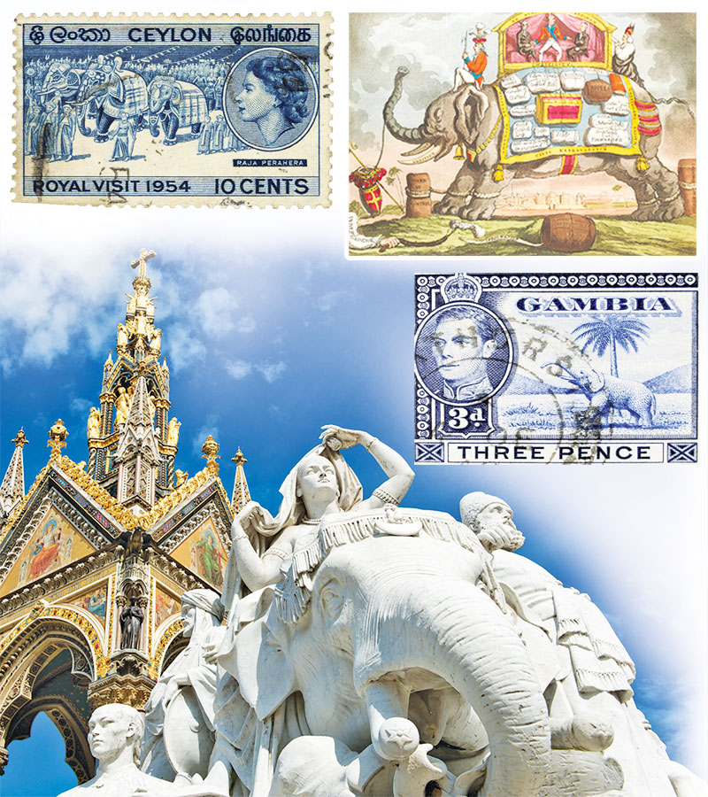 Fil, İngiliz derin devletinin geçmişten beri önemli sembollerinden bir tanesidir. Sömürgelere ait pulların üzerinde, Kraliyeti sembolize eden amblemlerde daima yer almıştır. |