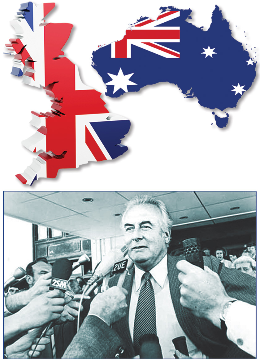 Buna en önemli örneklerden biri, 1975 yılında Avustralya meclisinde yaşanan olaydır. Dönemin Avustralya Başbakanı Gough Whitlam, İngiliz derin devletine açıkça tavır almış, ülkesine yönelik oynanan kirli oyunları deşifre etmiş ve Avustralya'yı bağımsız bir ülke haline getirmek için atılımlarda bulunmuştur. 1972 yılında başa gelen Whitlam, 1975 yılında İngiliz MI6 istihbarat kurumunun kendi hükümeti aleyhine faaliyet yaptığını açıklamış ve şunları söylemiştir: "İngilizler, doğrudan dışişleri ofisime gelen gizli mesajların şifrelerini çözüyorlar."