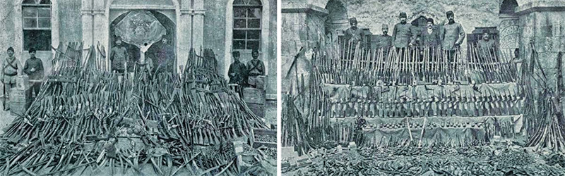 İngiliz derin devleti tarafından kışkırtılıp Osmanlı içinde isyan çıkaran Ermeni çetelere ait silahlar. |