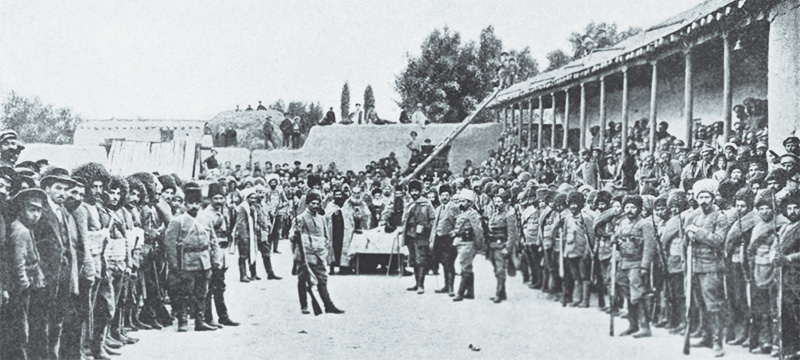 Kafkas Cephesi'nde Rus Ordusu önündeki Ermeni öncü birliği. Ermeni çeteler, Ruslarla birlik olup Osmanlı'ya karşı savaşmışlardır. |