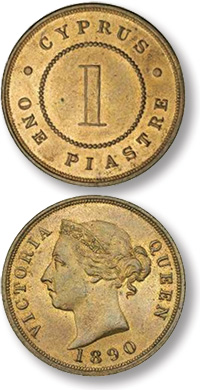 1890 yılına ait, üzerinde Kraliçe Viktoria'nın resmi olan Kıbrıs parası |