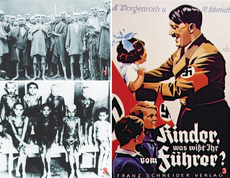 Almanya'daki toplama kamplarında Museviler sürekli olarak katledilirken, halka yönelik propaganda farklı şekilde işliyordu. Hitler'in Almanya'da ani yükselişinin en büyük sebebi, yapılan sahte propaganda idi. Medya propagandası, II. Dünya Savaşı sırasında Hitler Almanya'sında yoğun olarak kullanıldı. Propaganda posterleri, gerçekte yaşananları asla yansıtmıyordu. |