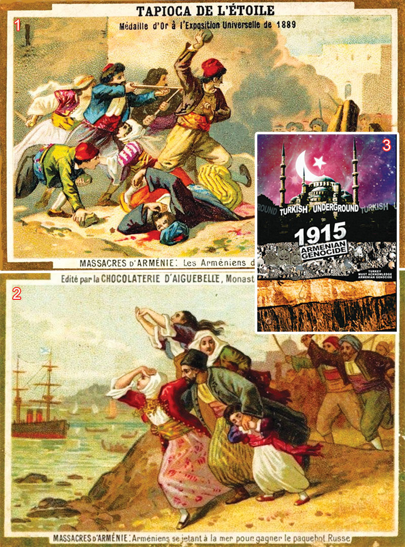 Günümüzde süregelen Ermeni meselesi, çeşitli propaganda posterleri ve çizimleriyle, sistemli yapılan provokasyonlarla tüm dünyaya empoze edilmiştir. Bu kara propagandanın mimarı, İngiliz derin devletidir. |