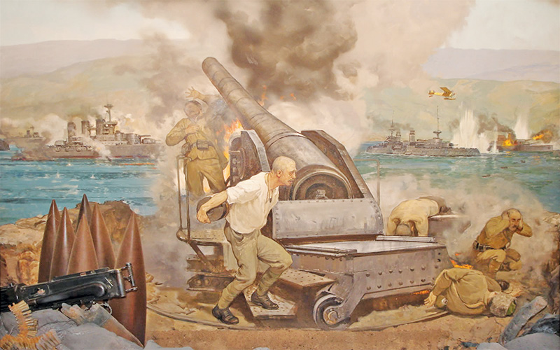 18 Mart 1915 tarihinde gerçekleşen deniz muharebesinde İngiliz ve Fransız savaş gemileri etkisiz hale getirilmiştir. |