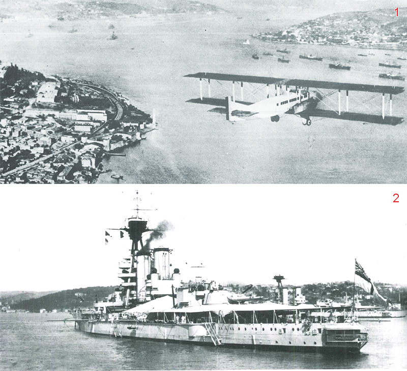 1. İstanbul Boğazı'nda itilaf devletleri donanması ve şehri havadan kontrol eden Fransız uçağı2. İstanbul'un işgali sırasında Boğaz'daki İngiliz donanması |