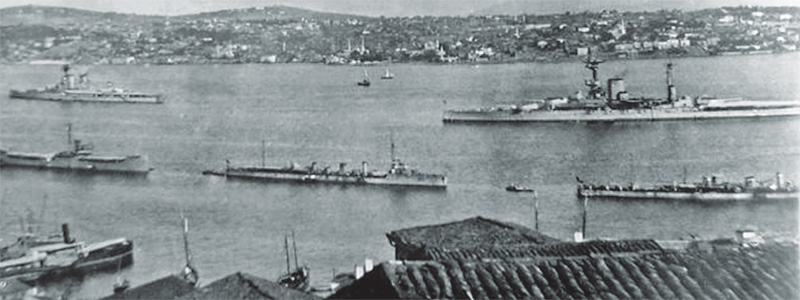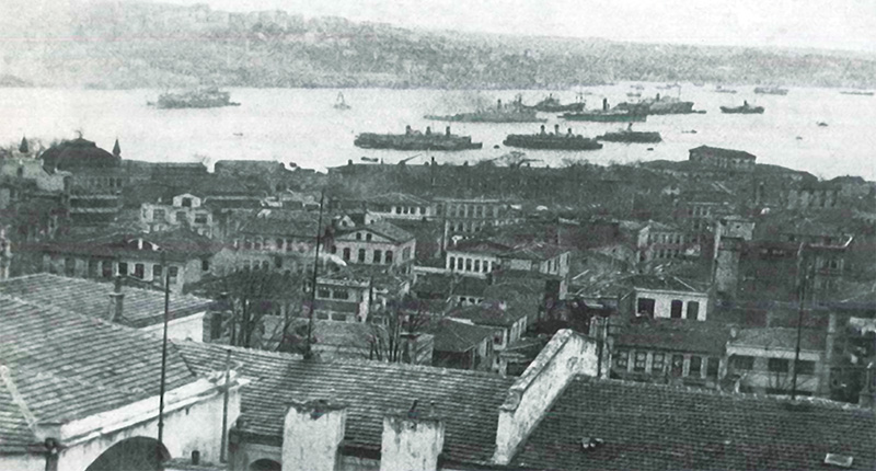 Mondros Mütarekesi'nin imzalanmasından sonra Boğaz'da işgal gemileri |