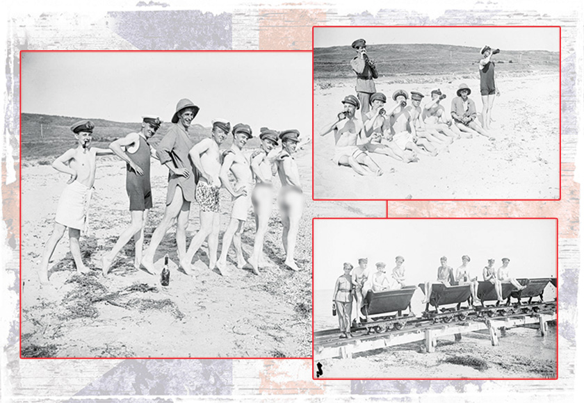 İstanbul'un işgali sırasında Marmara sahilinde taşkınlık yapan İngiliz askerleri ellerinde içkileriyle |