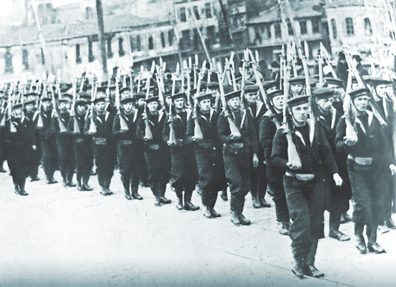 1. İşgal Kuvvetleri İzmir'e çıkarken 2.İngiliz derin devleti, Yunanistan'a İzmir'i vaat etmişti. Resimde, bu vaade inanan Yunan askerlerinin İzmir'de geçit töreni görülüyor. |