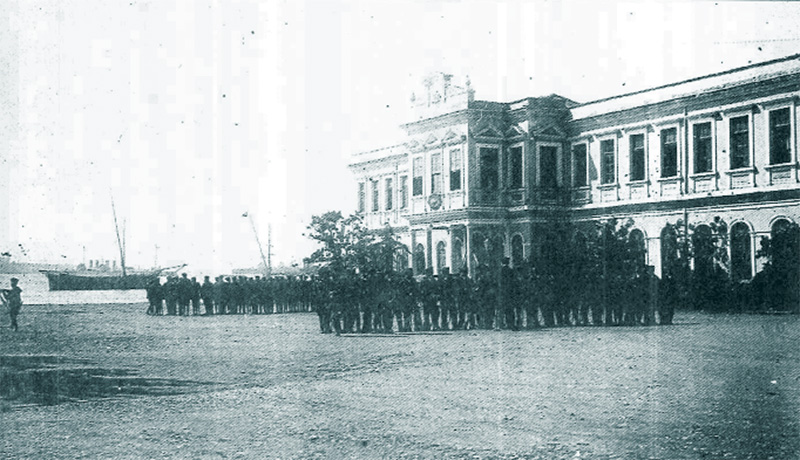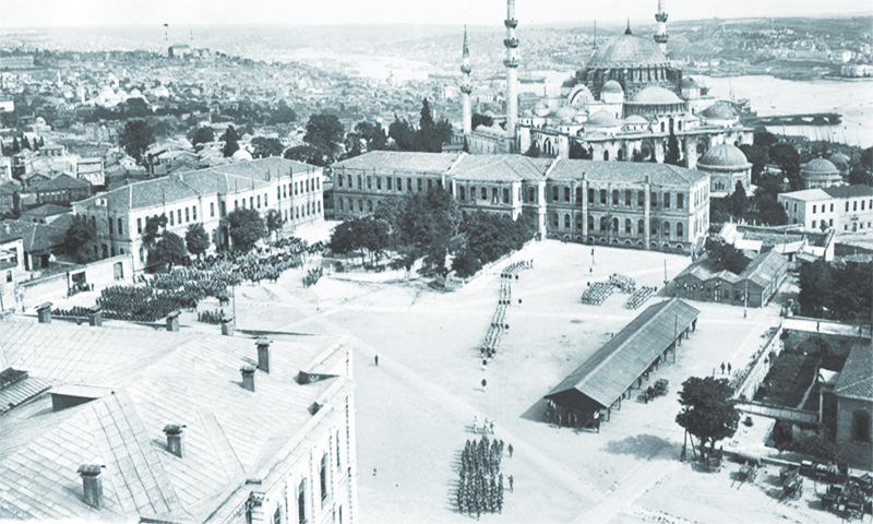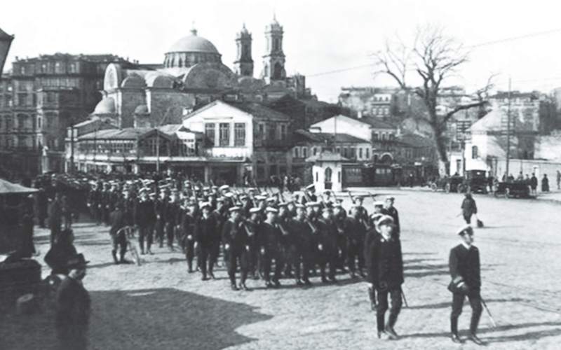 Dolmabahçe Sarayı önünde talim yapan İtalyan askerleri. |