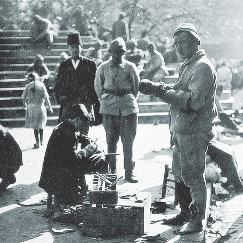 Savaşa gitmeden önce ayakkabısını temizleyen Türk askeri |