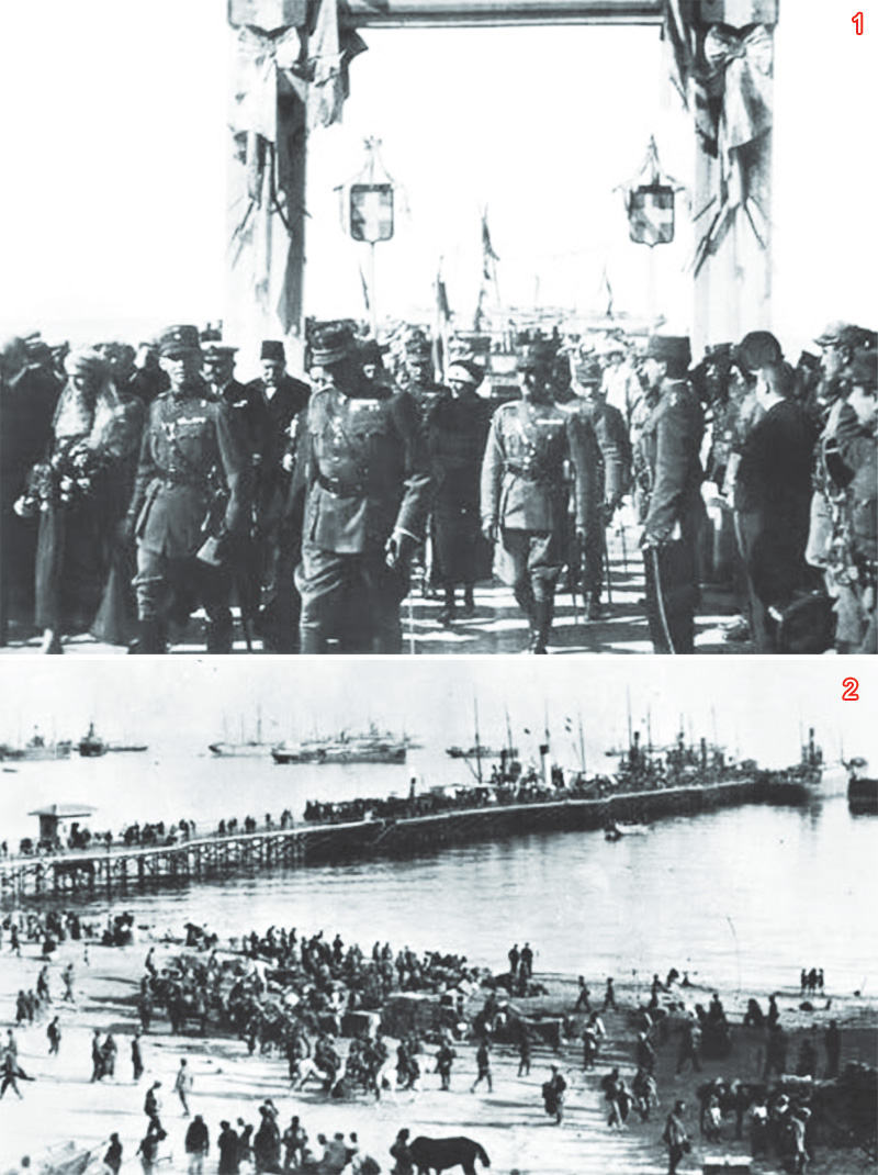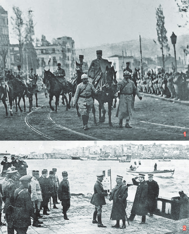 (1) Fransız işgal kuvvetleri komutanı Louis Franchet d'Espèrey, Galata'dan Şişhane'ye girerken(2) İstanbul Limanı'nda Fransız Louis Franchet d'Espèrey ile İngiliz Edmund Alalenby'in buluşması |