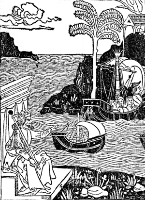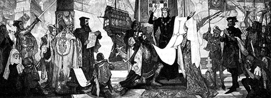 Zacuto, Kabala'dan aldığı ilhamlarla geliştirdiği astrolojik haritalarla, Kolomb ve Vasco da Gama gibi "kaşif"lerin yolunu açmıştı. Üstte, Zacuto, da Gama'yı yolculuğuna uğurluyor. |
