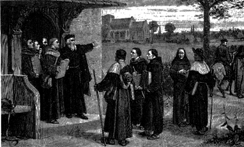 Yandaki çizimde, John Wycliffe, “Lollards” adı verilen müridlerini, Katolik kilisesi aleyhine propaganda yapmaları için ülkenin değişik yerlerine gönderiyor. Tarihçiler, Avrupa’nın ilk önemli Protestan deneyimi olan “Lollard”ların, gizli hücreler halinde örgütlendiklerini bildirir. John J. Robinson ise, bu örgütlenme biçimini açığa çıkarıp, “Lollard”ların, Katolik kilisesine büyük düşmanlık besleyen Tapınakçılar (Masonlar)la işbirliği içinde, hatta “özdeş” olduklarını kanıtlıyor. |