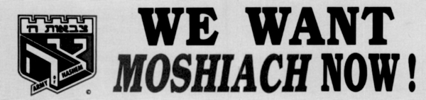 Yahudiler artık Mesih’in gelişinin an meselesi olduğunu düşünüyorlar. Üstte İsrail’deki Hasidik Habad hareketinin kullandığı bir propaganda posteri: “Mesih’i istiyoruz, hemen şimdi!” |