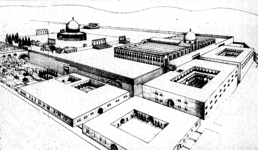 İsrailliler, Süleyman Tapınağı’nı inşa etmek için Harem-i Şerif’teki İslam mabetlerini yıkmanın şart olduğunu biliyorlar. İslam mabetlerini yıktıklarında yerine inşa edecekleri Tapınağın planı bile hazırlanmış durumdalar. Altta, Harem-i Şerif’in bugünkü durumu, altta ise Tapınağın rekonstrüksiyonu... |